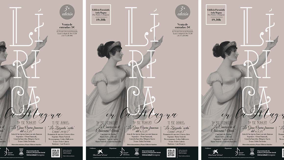 El ciclo “Lírica en la Magna” pretende acercar la Lírica al gran público y, al mismo tiempo, contar con el ya iniciado o especializado. En esta tercera edición, realizaremos un recorrido por tres pasajes concretos dentro de la historia de la Lírica: la Canción de cámara vienesa de finales del s.XVIII, punto de partida para el futuro desarrollo del género del lied alemán; la gran ópera francesa de la segunda mitad del s.XIX, que se constituyó como un estilo operístico de identidad propia gracias a la contribución de los grandes compositores franceses; y el Género chico de nuestro Género Lírico, la Zarzuela, que aun considerándose un género menor dentro de ella, compite en calidad, personalidad y originalidad con su hermana mayor. Para ello, a lo largo de estos tres recitales, enmarcados bajo un original formato de recital, iremos desgranando las características propias de cada uno de los estilos abordados, de una forma amena, pedagógica y progresiva.