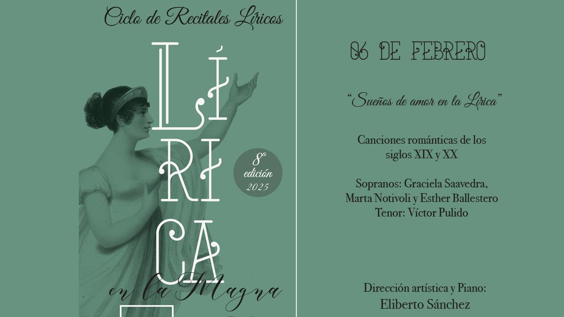 Los poetas románticos del s. XIX supieron plasmar en sus versos todas esas variedades y, como no, los compositores pusieron su visión y su sello personal en cada una de sus composiciones. De los protagonistas de este recital, unos son afamados compositores. Otros, han sido olvidados injustamente. Pero las obras de todos ellos, muestran con gran belleza diferentes sueños de amor. Soliloquios que van en busca del propio placer, que sueñan en amores pasados, presentes o futuros, y hasta íntimos discursos a las puertas de la muerte dirigidos a su ser amado.